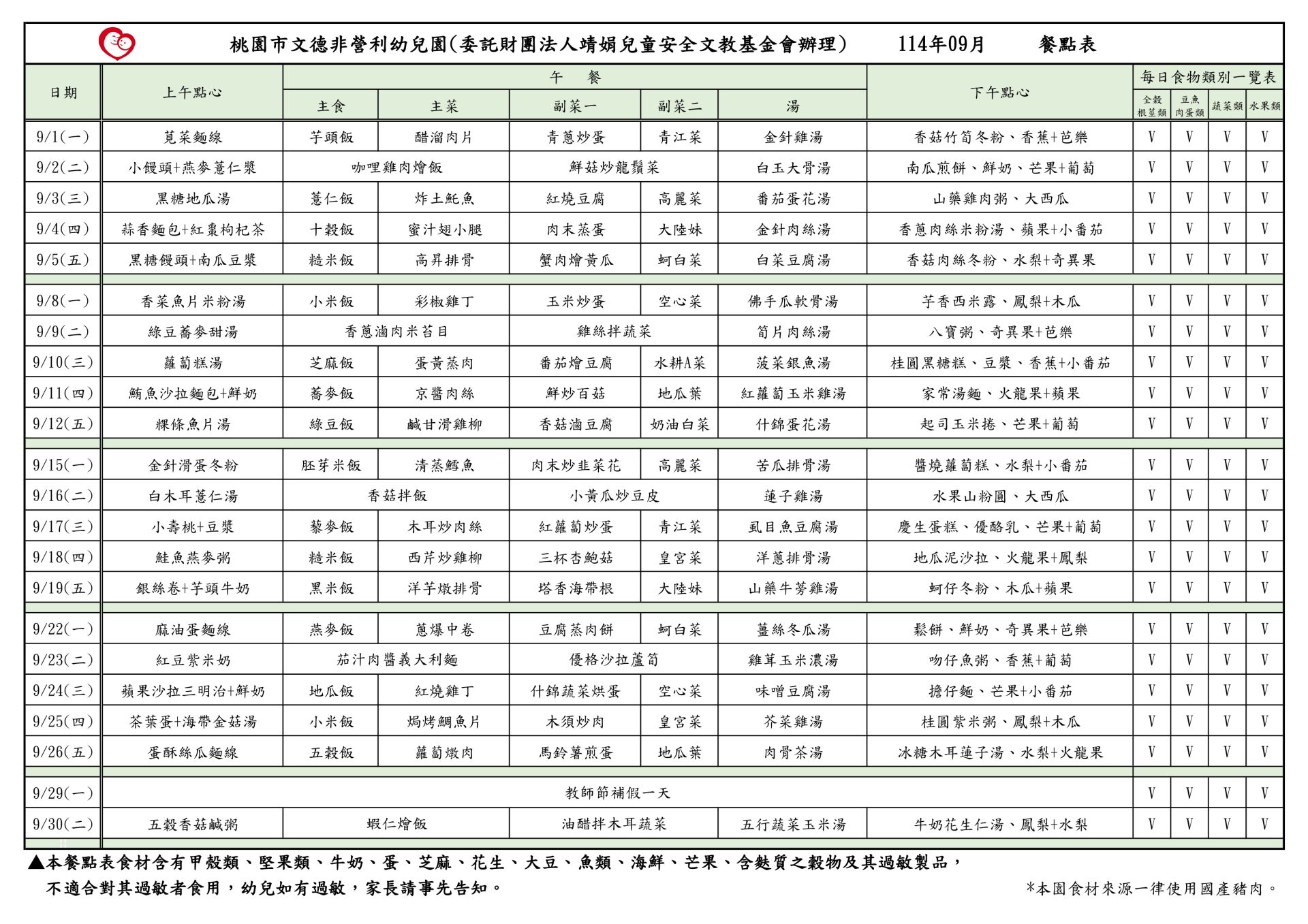 114年09月 餐點表