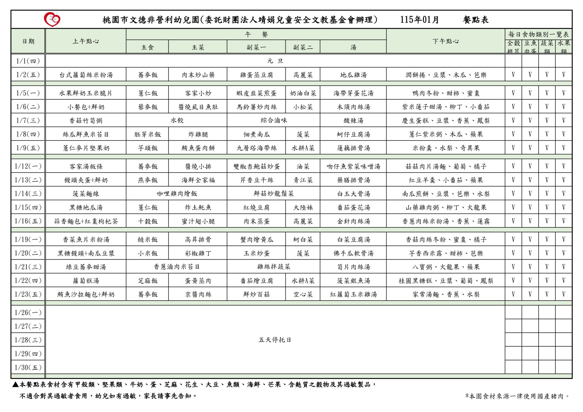 115年01月 餐點表